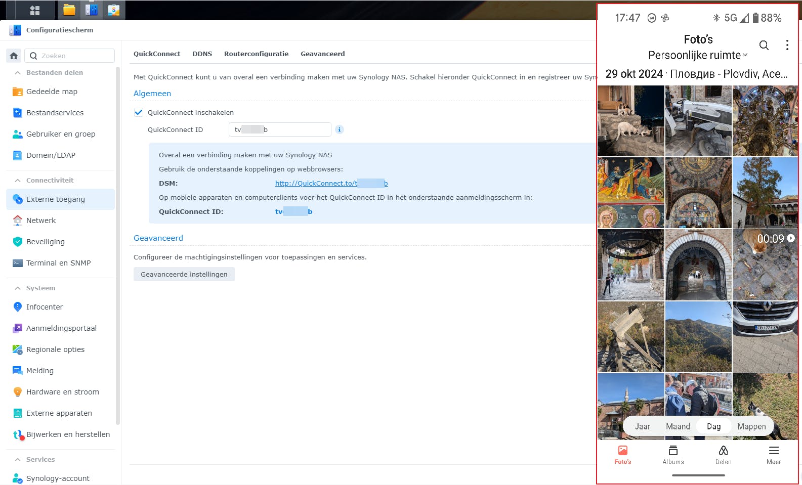 Je fotocollectie, beheerd met een tool als Immich of via je Synology-NAS, is standaard niet toegankelijk voor ongeautoriseerde personen buiten je netwerk. Wil je dat dit wel kan? Dan kun je bij een Synology-NAS de ingebouwde functie QuickConnect inschakelen via het Configuratiescherm in DSM, bij Externe toegang. In de praktijk moet je alleen vaak aan de slag met technieken als poortdoorverwijzing op je router. Of je moet een VPN-server installeren zoals WireGuard, eventueel gecombineerd met een eigen hostnaam via dynamisch DNS om het probleem van een wisselend extern ip-adres te omzeilen.