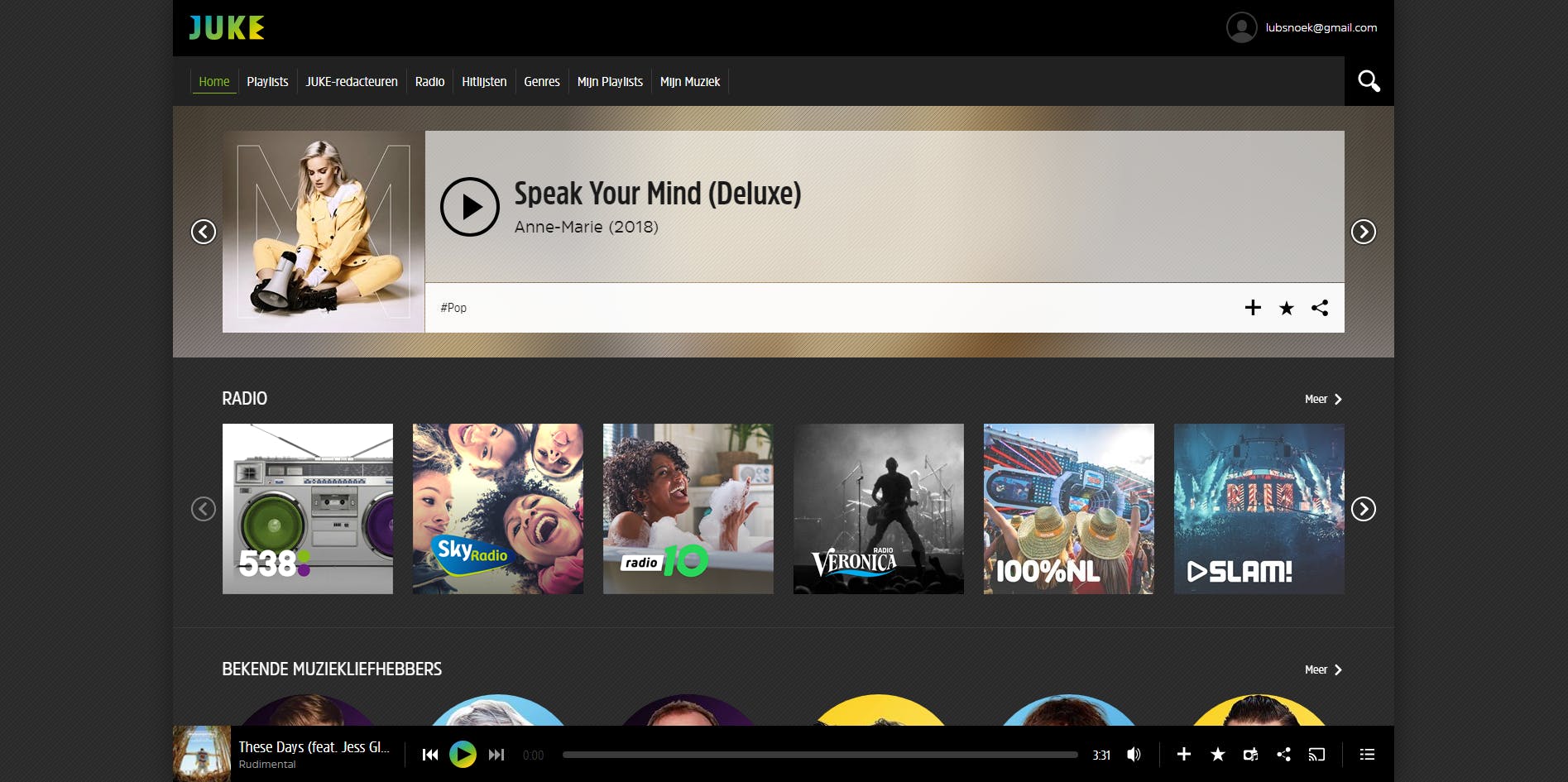 Voor het vinden van verborgen pareltjes, kun je ook de Juke-redacteuren raadplegen. Juke heeft namelijk een aantal bekende Nederlanders uit de radio- en muziekwereld ingelijfd om afspeellijsten samen te stellen. Benieuwd welke muziek Armin van Buuren luistert als hij even geen trance luistert? Of wil je weten wie de band Racoon heeft geïnspireerd om muziek te gaan maken? Je kunt het zelf beluisteren. Zelfs de ‘Even brak chillen’-afspeellijst van Fred van Leer bevat een paar juweeltjes. De lijsten worden ingeluid met een kort fragment waarin de redacteur zelf een introductiepraatje houdt, wat de lijst een leuk persoonlijk gevoel geeft.