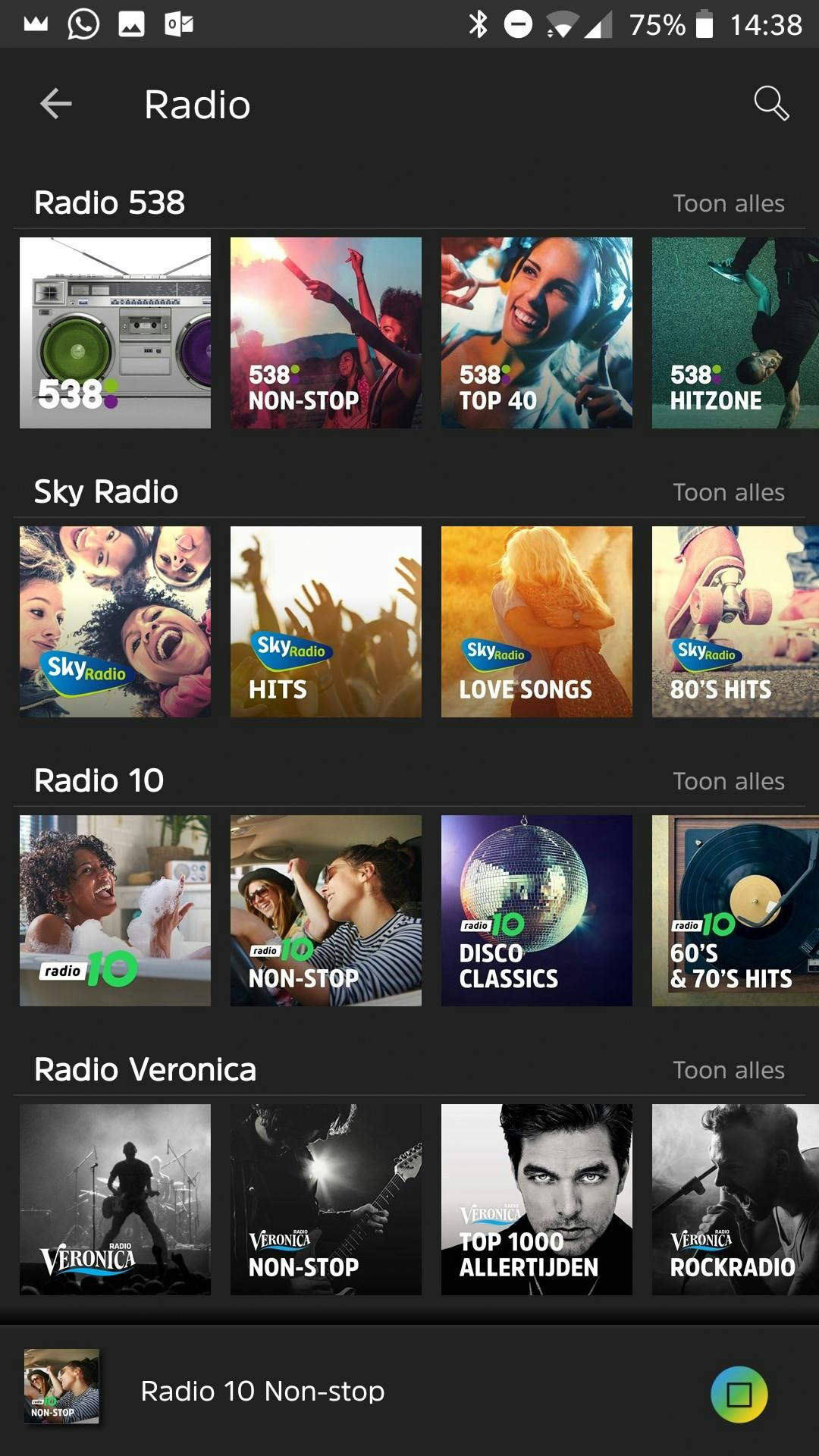 Je kunt Juke gebruiken via een app op je smartphone of via een webapplicatie in de browser. Als je de dienst gratis gebruikt, krijg je via de app toegang tot de vier grootste radiostations van Nederland, evenals de verschillende substations die daaronder vallen. Zo kun je luisteren naar Radio 10 zoals deze live op de radio is, maar krijg je ook toegang tot stations als Radio 10 Disco Classics en Radio 10 60’s en 70’s Hits. Alle stations laden snel en de geluidskwaliteit is prima. Je kunt helaas niet zien welk nummer er op het moment van luisteren wordt afgespeeld. Een gemiste kans, aangezien het dan eenvoudiger zou worden om nummers die je hoort direct op te slaan om later weer te luisteren.