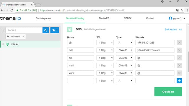 Nu moet je een zogenaamd cname-record aan de dns-instellingen voor het domein toevoegen met in ons geval de naam cdn en als waarde de zone-url. Bij het invoeren van die waarde moet je hier, onder andere bij TransIP, overigens nog een afsluitende punt achter zetten. Nu hoef je alleen nog een Zonealias toe te voegen bij KeyCDN.