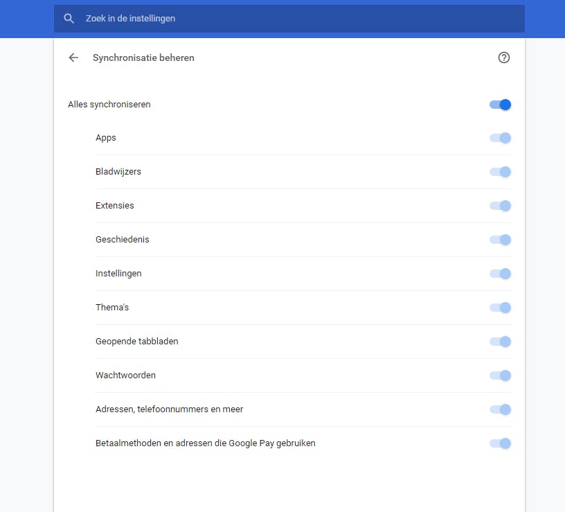 Kiezen wat je synchroniseert in de Chrome-browser