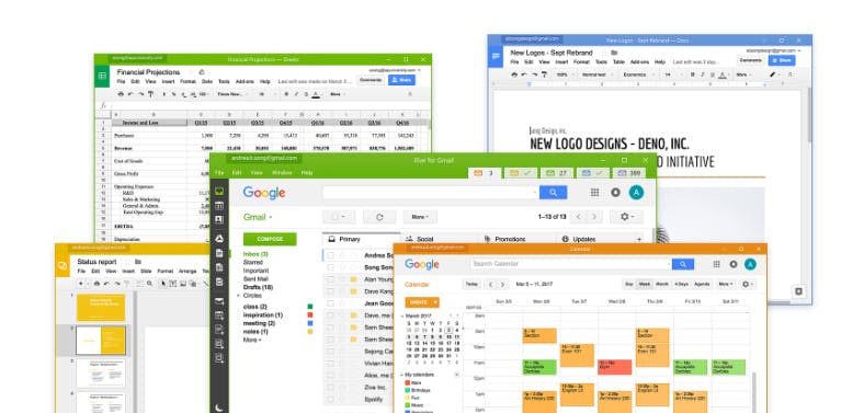 Je merkt dat iedere knop een apart venster opent. Dat is handig, want zo kun je bijvoorbeeld gemakkelijk twee documenten naast elkaar houden of een mailtje lezen terwijl je een spreadsheet open hebt staan.