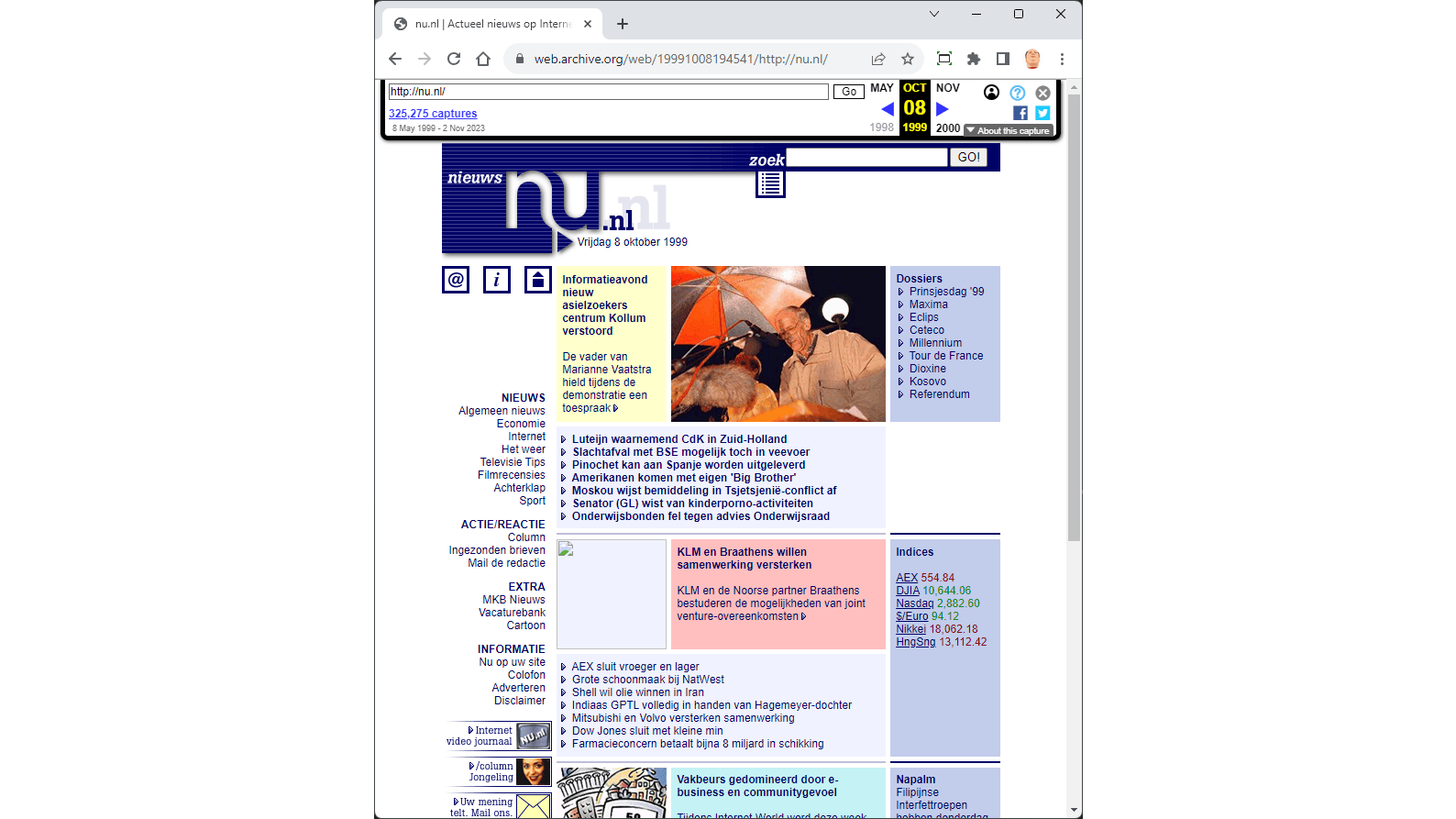 Bovendien hadden de krantenredacties al snel door dat zij iets met het internet moesten. Na elkaar lanceerden ze eigen websites. In het Internet Archive zijn deze terug te zien, net als de eerste versies van Nu.nl. Wat opvalt is dat de onderwerpen die het nieuws bepalen, weinig zijn veranderd. De manier waarop het nieuws wordt gebracht, is wel radicaal veranderd.