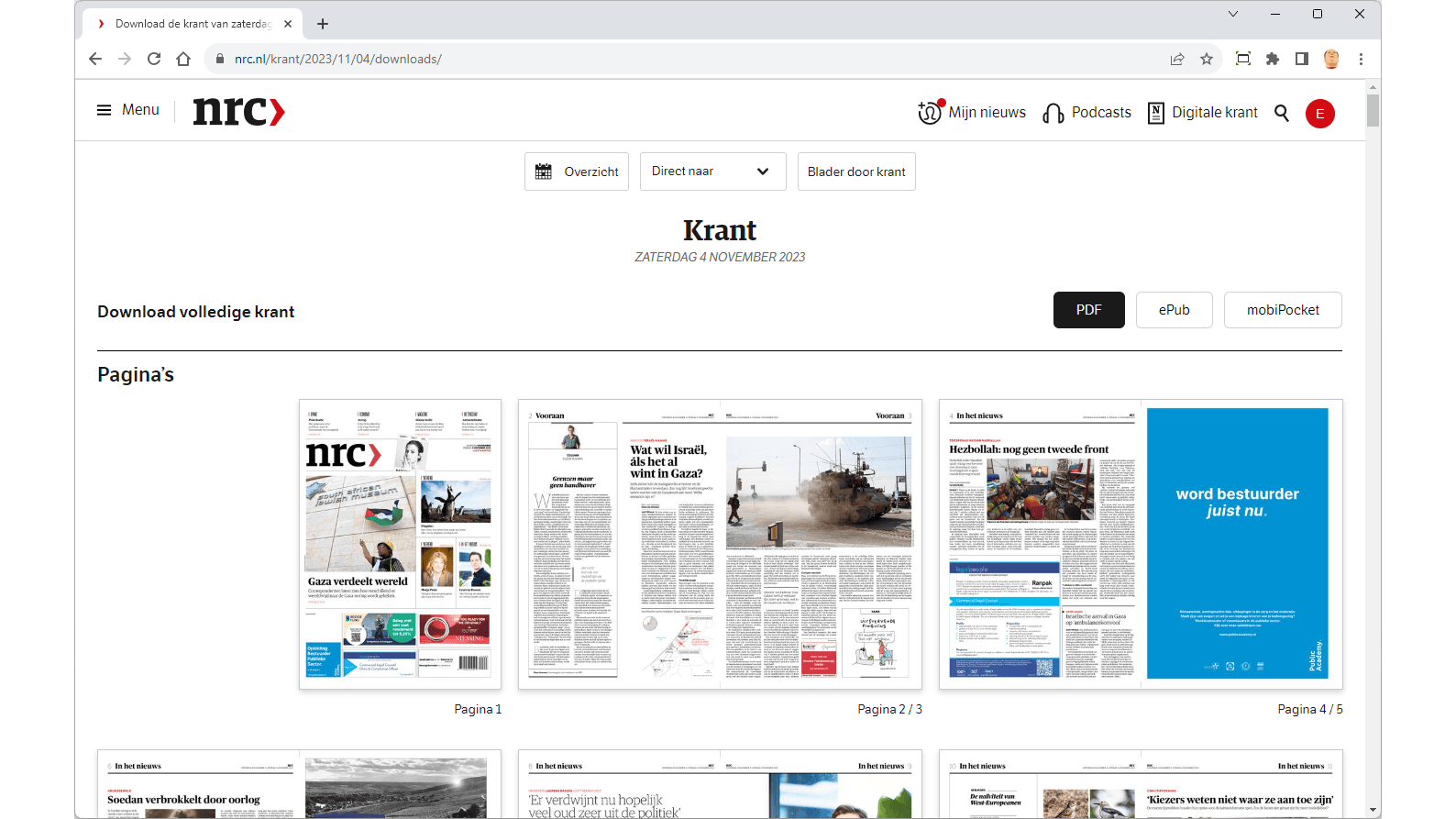 Lees je de krant digitaal, dan is er een duidelijk verschil tussen het lezen via de browser op je pc en via een app op je telefoon of tablet. Bij een mobiel apparaat wordt de digitale krant altijd eerst gedownload en in een verder afgeschermd archief geplaatst. Dit maakt het mogelijk om de krant ook te lezen zonder internetverbinding. Dat is handig als je reist, maar beperkt wel het verdere gebruik. De opslagcapaciteit van mobiele apparaten is vaak beperkt en oude kranten worden daardoor na enige tijd weer verwijderd. Alleen wanneer ze naar de digitale papierbak gaan, is dit soms nog te herstellen. Gebruik je je pc, dan is er meer mogelijk. Je kunt dan de krant of losse artikelen downloaden. Dat kan meestal als pdf of als een formaat voor op je e-reader.