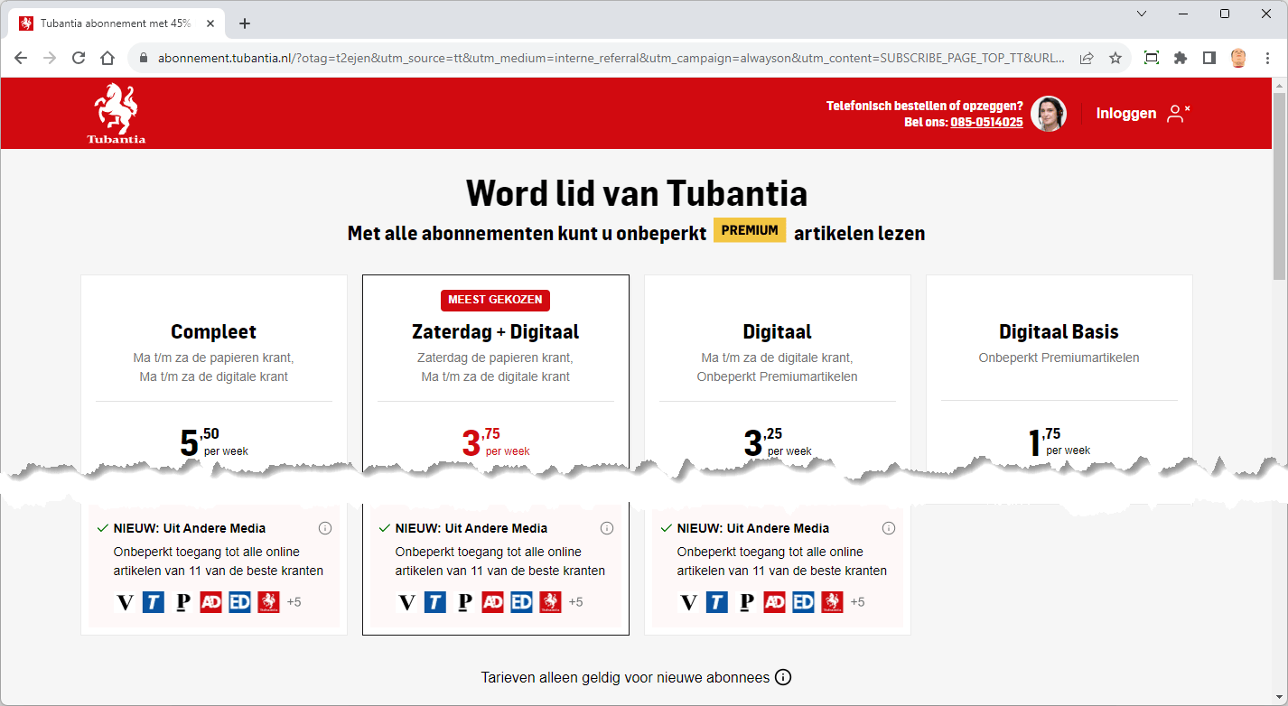 Digitalisering van de krant leidde ook tot nieuwe abonnementsvormen. Was lang ‘papier’ nog uitgangspunt en werd ‘digitaal’ als extra service gezien, inmiddels is dit volledig omgedraaid. De goedkoopste abonnementen bieden helemaal geen toegang meer tot de digitale krant en alleen tot alle berichten via de site. Dat klinkt als een verlies, maar is voor jongeren, die meestal geen nostalgische gevoelens hebben bij de traditionele krant, de natuurlijkste vorm.