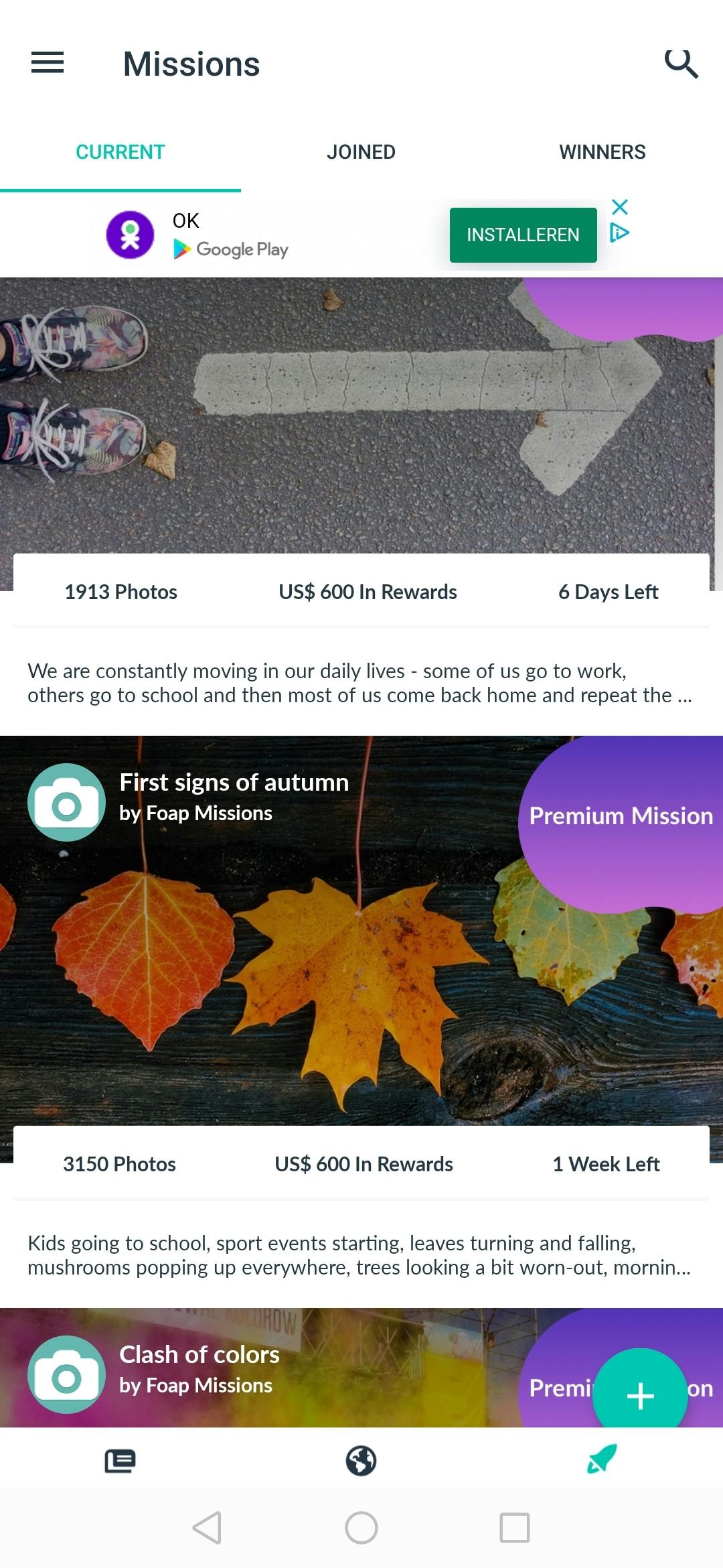 Het kost best wat tijd om een foto te selecteren, tags te geven en online te zetten. Vandaar dat het interessant is dat je er geld mee kunt verdienen. Echter gaat dat niet zo snel. Wat enorm helpt is om mee te doen aan fotowedstrijden. Vooral Foap is daarmee erg fanatiek. Door hieraan mee te doen kun je je in de kijker spelen van grote merken, want die schijnen wel actief te zijn op deze creatieve app. Het is best moeilijk om op te vallen tussen zoveel vindingrijke fotografen, dus vaak meedoen aan wedstrijden kan je een voorsprongetje geven.