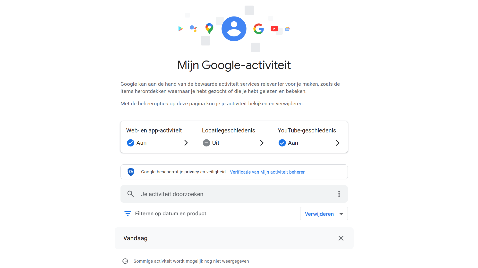 Maak je gebruik van Google? Ook deze instellingen passen we aan. In het advertentiecentrum kun je aangeven dat je geen gepersonaliseerde advertenties wilt zien. Ga naar https://myadcenter.google.com. Rechtsboven zie je de optie Gepersonaliseerde advertenties. Kies voor Uit. Bepaal hierna in hoeverre je Google-activiteit mag worden vastgelegd. Je vindt de instellingen op https://myactivity.google.com/myactivity. Google maakt onderscheid tussen drie typen activiteiten: Web- en app-activiteit, Locatiegeschiedenis en YouTube-geschiedenis. Die vind je bovenaan de pagina. Klik op een activiteit om de instellingen te zien. Kies Uitzetten als je de informatie niet wilt opslaan. Er is ook een middenweg mogelijk: hierbij wordt de activiteit wel opgeslagen, maar bepaal je dat deze na een bepaalde periode automatisch wordt verwijderd. Klik onderaan de pagina op Kies een optie voor automatisch verwijderen. Activeer de optie Automatisch activiteit verwijderen die ouder is dan en geef het aantal maanden op.