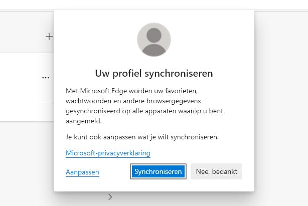Om er daadwerkelijk gebruik van te maken, dien je de Edge-browser aan je Microsoft-account te koppelen. Heb je dit nog niet gedaan, ga dan naar edge://settings/profiles en klik naast Profiel 1 op Aanmelden. Log in met je Microsoft-accountgegevens en klik bij de pop-up op Synchroniseren.