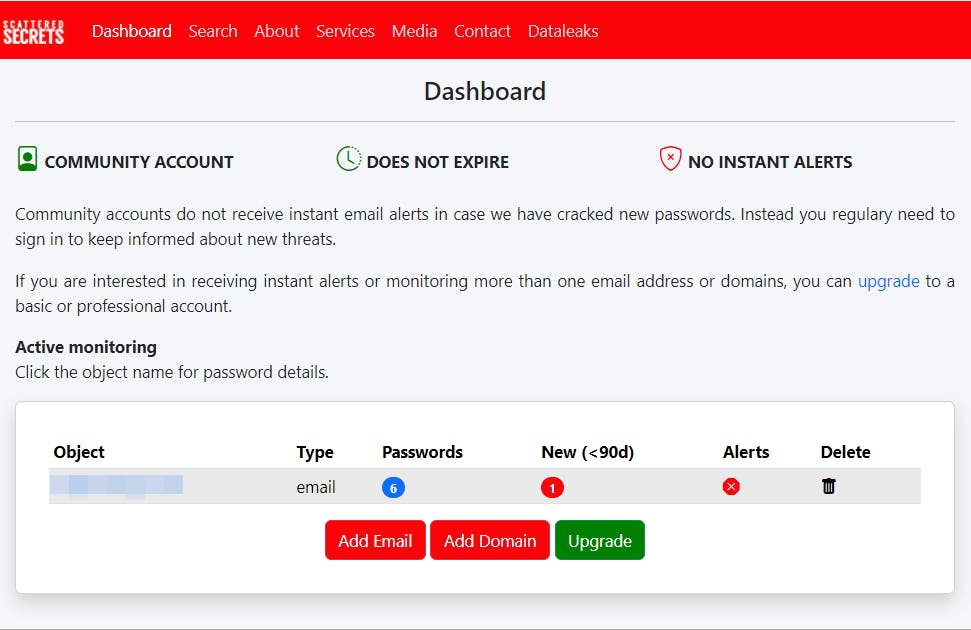 Gehackt Wegwerpadressen en aliassen zijn handig om je privacy te beschermen, zelfs bij betrouwbare sites. Er bestaat tenslotte altijd een risico dat hun databanken worden gehackt. Hierdoor kan je e-mailadres in verkeerde handen vallen. Gelukkig kun je met diensten als www.scatteredsecrets.com (informatie na registratie, inclusief gekraakte wachtwoorden), F-Secure (informatie via e-mail), en www.haveibeenpwned.com (directe informatie) controleren of je e-mailadres is gelekt. Op deze laatste site kun je je via Notify me, in het menu bovenaan, abonneren op notificaties voor toekomstige datalekken. Omdat niet elke dienst dezelfde databases gebruikt, kan het nuttig zijn om meerdere diensten te raadplegen.