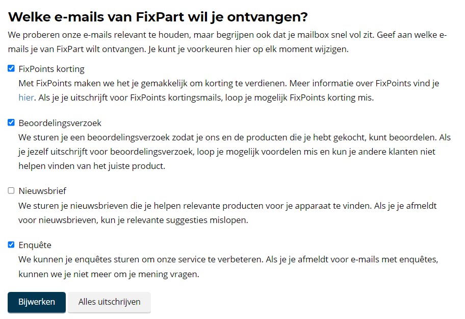 Het is in elk geval geen goed idee om op spamberichten te reageren, want daarmee bevestig je aan de spammers dat je e-mailadres actief gebruikt wordt. Als het om commerciële e-mail van een legitiem Europees bedrijf gaat, vind je doorgaans een uitschrijflink of -knop, waarmee je je direct en definitief kunt afmelden, zoals wettelijk vereist. Dit geldt ook voor zogeheten 'grijze mail', zoals nieuwsbrieven waarvoor je je ooit hebt ingeschreven, promotionele aanbiedingen van bedrijven waar je eerder zaken mee hebt gedaan, of updates van sociale media. Wees extra voorzichtig met uitschrijven bij onbekende of dubieuze bedrijven of andere instanties, vooral buiten Europa. De uitschrijfknop en andere links kunnen misbruikt worden om de geldigheid van je mailbox te bevestigen of zelfs om je naar een phishing-site te leiden. In zulke situaties is het beter om de e-mail meteen als spam te markeren of een aangepast filter te maken op basis van bijvoorbeeld de afzender of het onderwerp (zie ook tip 7 t/m 10).