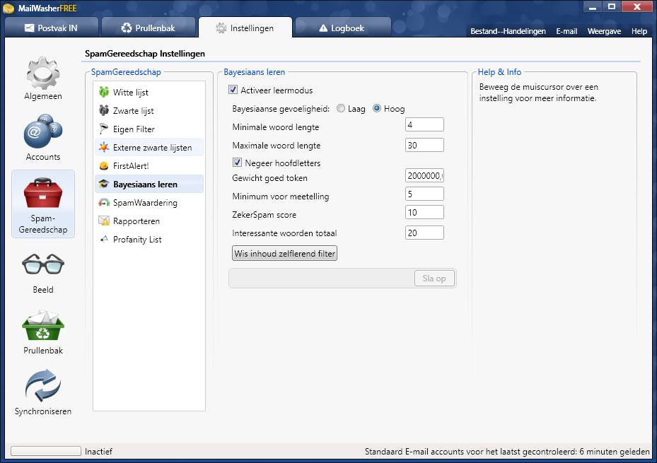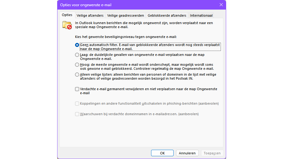 - Spamfilter naar wens instellen