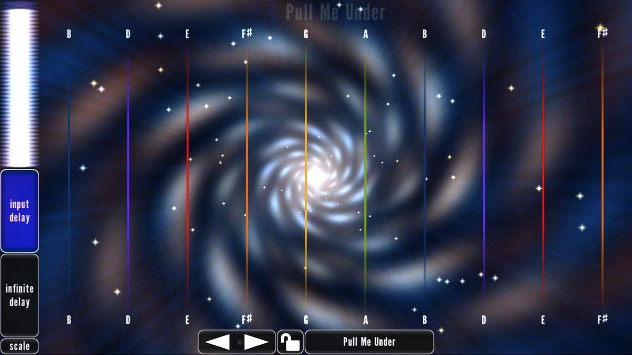 Via je touchscreen kun je melodieën op een soort virtuele gitaar spelen