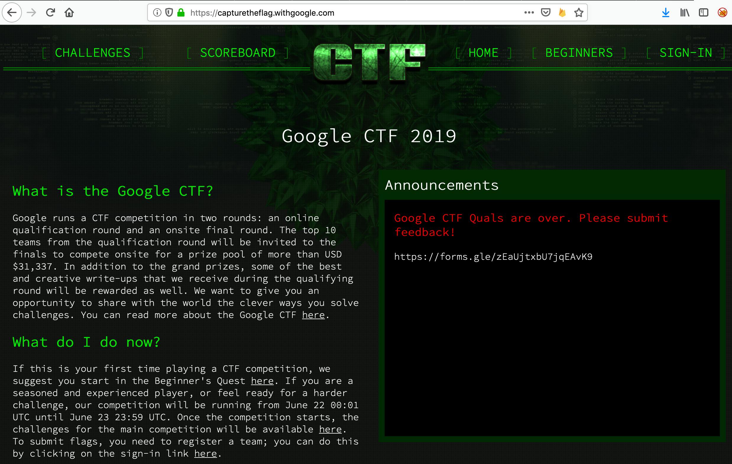 Google heeft een CTF waarbij de beste tien teams na een online kwalificatieronde uitgenodigd worden om onsite de finale te spelen. En hier zijn leuke prijzen te winnen, maar het begint wel eerst online en daar kan iedereen aan mee doen.