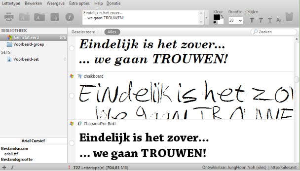 De lettertypes op je computer zijn lastig met elkaar te vergelijken. Je kunt een zinnetje typen in Word en het font steeds veranderen, maar er is een betere manier. Met NexusFont gaat het veel eenvoudiger! Tik eerst (een stukje) tekst dat je wilt gebruiken. NexusFont toont de tekst in alle lettertypes die het programma kan vinden op je computer. Zie je iets moois? Vink het lettertype aan. Klik boven in beeld op Geselecteerd om alleen je selectie te tonen. Zo kom je het snelst tot het beste resultaat voor een tekst, flyer of uitnodiging.