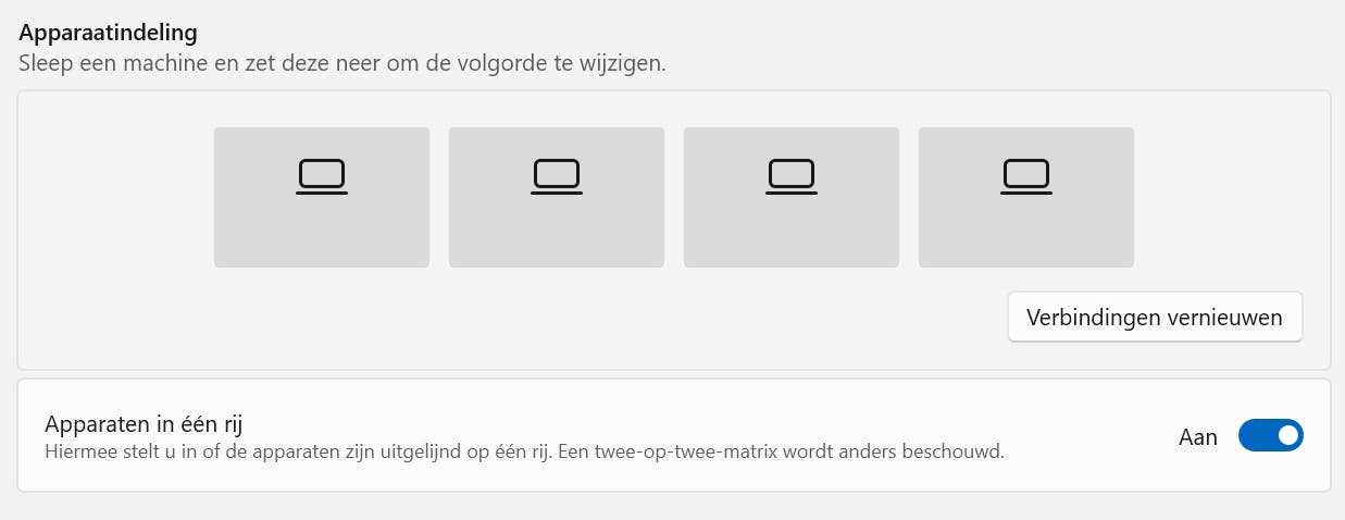 Maak je gebruik van meerdere computers en wil je één muis gebruiken voor alle apparaten? Dan is de PowerToy Mouse Without Borders interessant. Nadat je 'm hebt ingeschakeld, kun je de muis van het ene naar het andere apparaat slepen, vergelijkbaar met het gebruik bij meerdere beeldschermen. De muis verschijnt naadloos op het andere apparaat, bijvoorbeeld van een desktop naar een laptop.