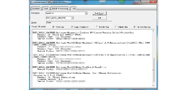 Met een druk op de knop vindt LicenseCrawler uw serienummers terug in het register.