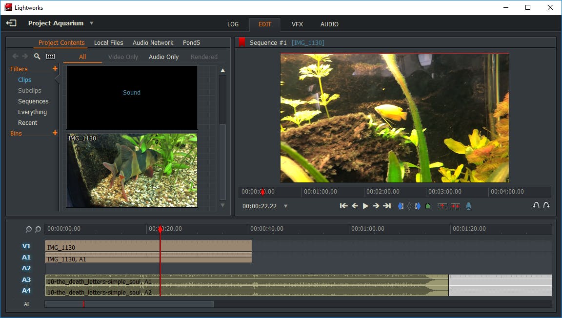 Je opent in Lightworks een nieuw project, waarbij je direct de gewenste framerate opgeeft. Als je dat niet precies weet, laat je de videobewerker automatisch de juiste instellingen kiezen. Het toevoegen van videoclips is eenvoudig, want het programma bevat een mappenstructuur met de inhoud van jouw schijf. De bestandsondersteuning is in orde. Zo importeren gebruikers moeiteloos avi-, mov-, m2ts- en mkv-bestanden, waarbij de software 4K-materiaal niet schuwt. Via het tabblad Edit voer je bewerkingen uit. Videoclips en muziektracks voeg je één voor één aan de tijdlijn toe, zodat je naar eigen inzicht de volgorde van de film bepaalt.