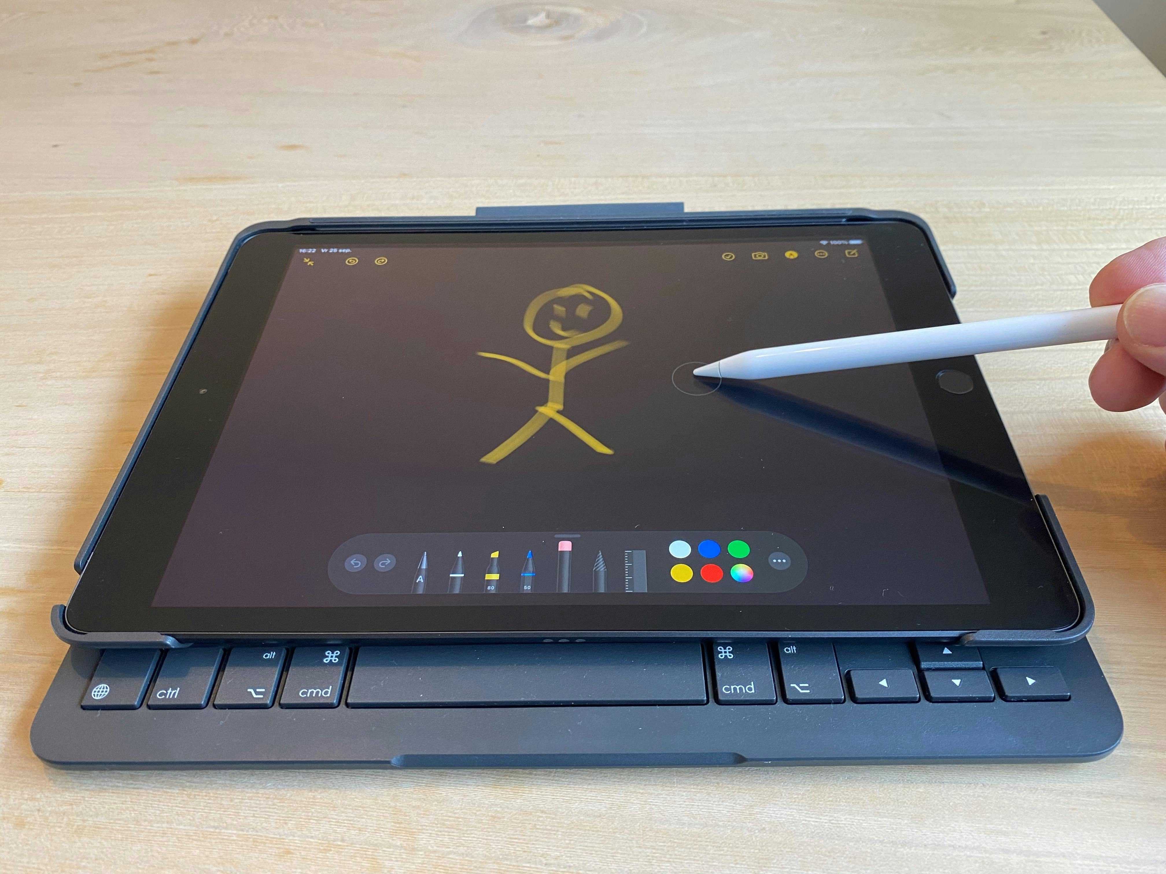 Groot voordeel van de robuuste case is de goede bescherming en het toetsenbordje tikt werkelijk zalig. De Logitech Slim Folio heeft veruit het lekkerste toetsenbord voor een iPad en het is een wereld van verschil met Apple’s eigen Smart Keyboard. Een boek of roman erop schrijven is misschien wat te ambitieus maar lange stukken tikken is geen enkel probleem.