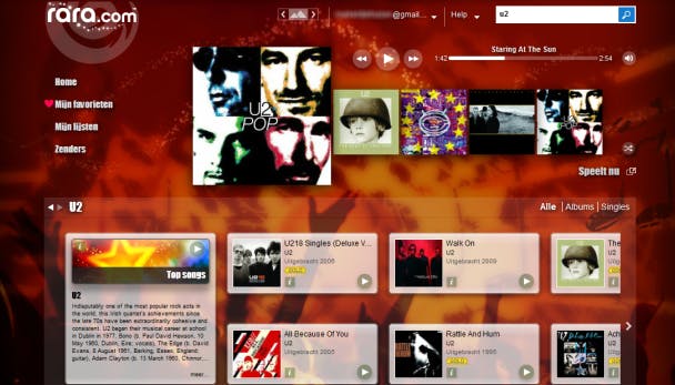 Rara is niet echt een bekende aanbieder in deze markt. Het aanbod van deze partij is behoorlijk groot, maar springt er niet echt uit vergeleken met de andere diensten. Rara werkt vanuit de browser en is voor zo'n vijf euro per maand onbeperkt te gebruiken. Voor tien euro per maand gebruik je ook de apps voor iOS, Android en Windows 8.