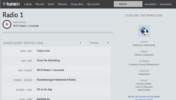 Wil je liever radiostations luisteren in plaats van afspeellijsten en albums? Probeer dan eens het gratis TuneIn. Op deze site vind je een groot aanbod van radiostations die je met een enkele muisklik direct afspeelt.