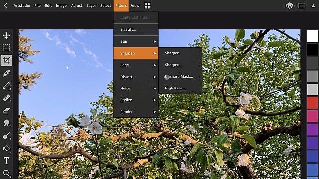 In ons voorbeeld pakken we een 12 megapixel smartphonefoto met een resolutie van 4032 x 3024. 4032 / 3024 = 1,333. Ofwel 4/3 (= 1,333). We willen de foto als bureaublad-achtergrond gebruiken op een 1920 x 1080 scherm, dus vul die waarden in in de verhoudingsvelden van je bijsnijdgereedschap (of kies voor 16:9). Maak vervolgens een uitsnede in die 16:9-verhouding. Verklein de foto dan naar 1920 x 1080 pixels; in Artstudio Pro kies je daarvoor in het menu Image de optie Resize Image. Vul de gewenste waarden 1920 x 1080 in de daarvoor bestemde velden. Kies – indien beschikbaar in jouw programma – de beste resample-methode of laat je software die zelf selecteren. Na verkleinen helpt een unsharp-mask vaak om de foto (weer) haarscherp te krijgen. Je vindt dat onscherpte-masker veelal in de afdeling filters van je bewerker (in ArtStudio Pro onder Filters, Sharpen en Unsharp Mask.