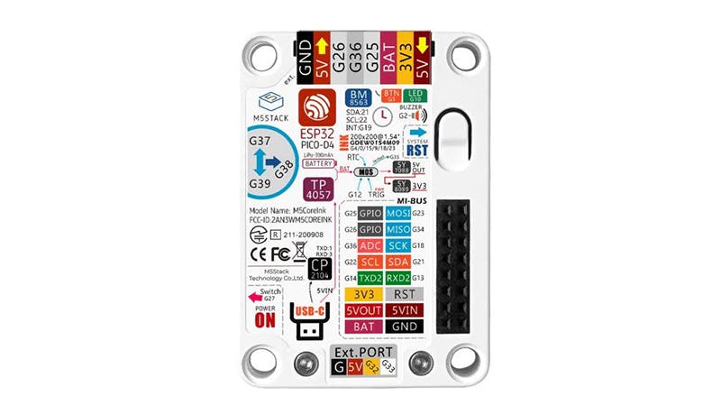 Gaat je voorkeur uit naar een e-ink-scherm, dan heeft M5Stack de Core Ink (1,54 inch) en de M5Paper (4,7 inch). Dit laatste product heeft een aanraakscherm met een hoge resolutie van 960 bij 540 pixels, terwijl de Core Ink aan te sturen is via een knop aan de zijkant. Beide e-ink-apparaten zijn voorzien van een batterij en een magneet. Daardoor kun je ze eenvoudig tegen je koelkast of een ander metalen voorwerp bevestigen.