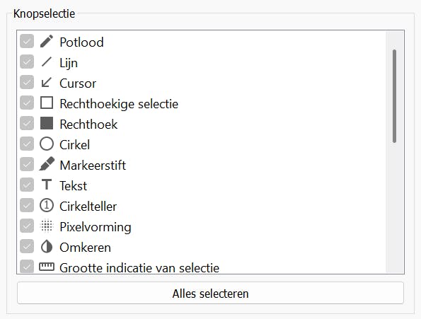 Interessant is de mogelijkheid om Flameshot naar je hand te zetten. Hierbij geef je onder meer aan welke knoppen standaard zichtbaar moeten zijn en bepaal je welke sneltoetsen je wilt gebruiken.