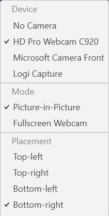 Bovendien heb je de mogelijkheid om de instellingen voor de webcamera verder naar je hand te zetten. Klik op het pijltje naast de knop. In het menu kun je onder Device kiezen welke camera je wilt gebruiken, als je over meerdere camera’s beschikt. Wil je alleen een opname van je webcamera maken en niet van het scherm? Kies dan in de sectie Mode voor Fullscreen webcam. In de sectie Placement kun je aangeven waar het beeld van de webcamera in het totaalvenster mag worden getoond, bijvoorbeeld in de linkerbovenhoek. Heb je de opname afgerond, dan wordt het materiaal automatisch online geplaatst. Er verschijnt een link die je met anderen kunt delen.