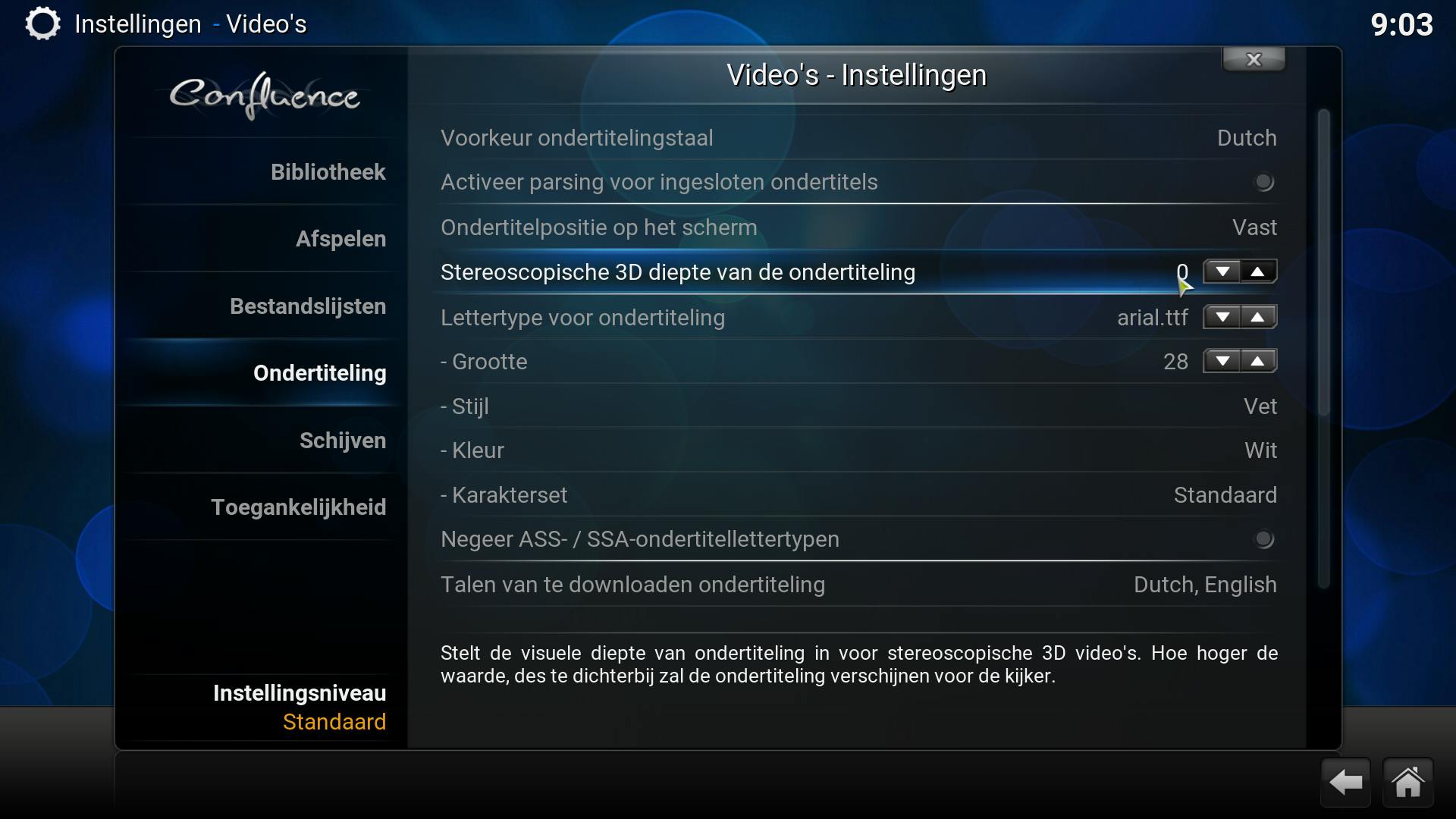 Wanneer je graag internationale films of series kijkt, is het gebruik van degelijke ondertitels wel zo prettig. Navigeer vanuit het hoofdmenu naar SYSTEEM / Instellingen / Video / Ondertiteling. Bij Voorkeur ondertitelingstaal kies je voor Dutch. Naar eigen inzicht kun je het lettertype, de grootte en de kleur van ondertitels aanpassen. Sommige mensen prefereren bijvoorbeeld gele ondertitels, omdat witte letters op een lichte achtergrond slecht te zien zijn. Zijn er geen ondertitels beschikbaar, dan kan Kodi die zelfstandig downloaden. Kies onderaan voor Talen van te downloaden ondertiteling en selecteer Dutch. Schakel English uit als je niet zit te wachten op Engelstalige ondertitels.