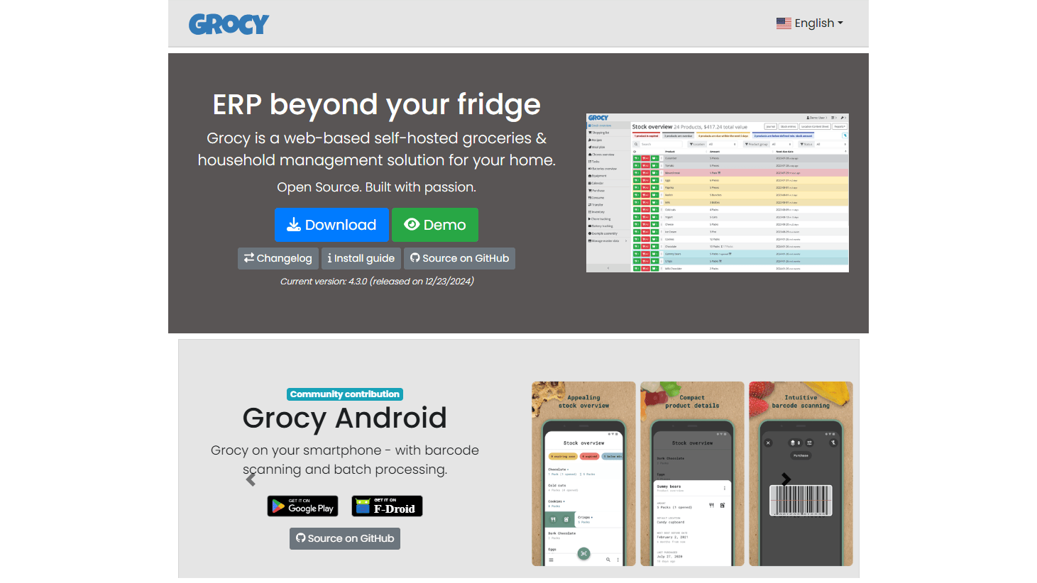 Grocy installeer je op je eigen server. Hoewel er ook een Windows-desktopprogramma voor bestaat (Grocy Desktop) is het voordeel van de serverversie dat je er toegang tot hebt vanaf al je apparaten, ook je tablet of smartphone. Dat is handig wanneer je in huis met taken bezig bent en even snel op je mobiele apparaat iets wilt opzoeken of aanpassen. Grocy heeft ook een mobiele app die met je eigen server verbindt.