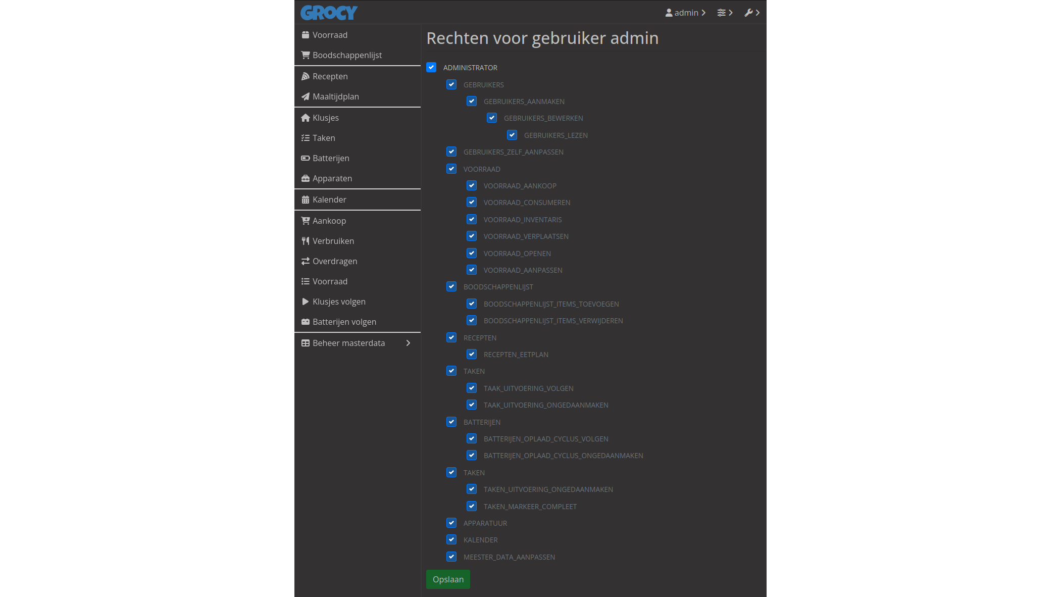 Indien gewenst stel je Grocy voor individuele gebruikers specifieke rechten in.