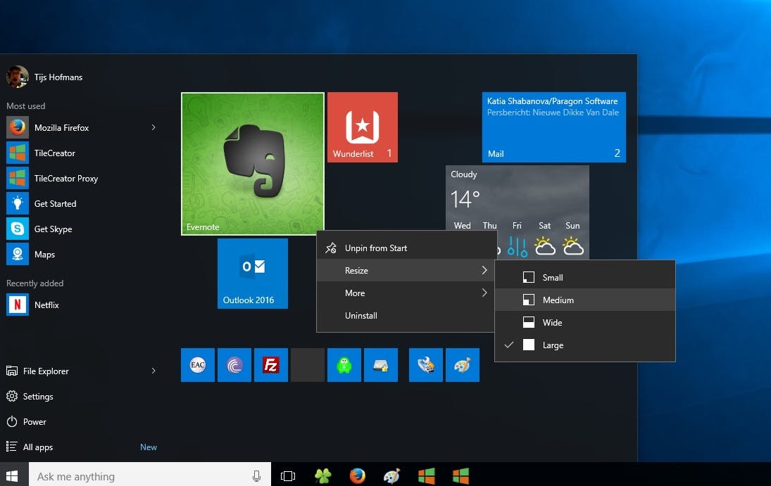 Let op: Dit is geen officiële manier om tegels te veranderen, maar een omweg - het echte veranderen van tegels wordt (nog) niet ondersteund in Windows 10). Je gebruikt een programma dat ervoor zorgt dat een startmenu-tegel omleidt, zodat het uiteindelijk het juiste programma toont. Daarmee duurt het iets langer dan normaal voor een programma is geopend. Als je een ssd gebruikt, merk je daar weinig van, maar voor hdd-gebruikers is de lag misschien storend. Gelukkig werkt het startmenu ook als je het programma verwijdert, dus probeer het vooral uit!
