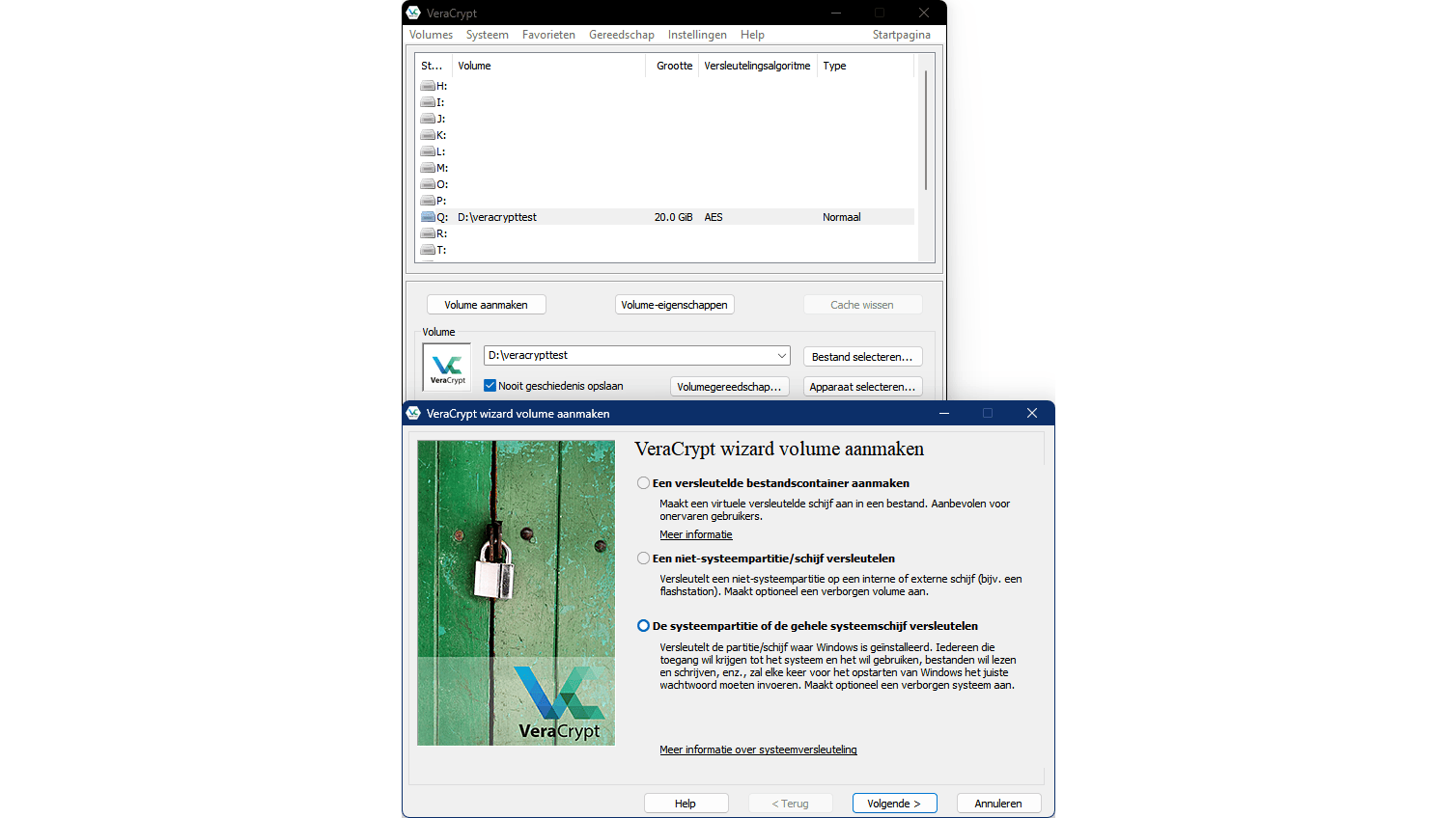 Windows Pro-edities en hoger bevatten weliswaar de functie EFS (Encrypting File System) voor het versleutelen van mappen, evenals de functie BitLocker voor de encryptie van een partitie, (systeem)schijf of usb-stick. Voor wie met Windows Home werkt, zijn de mogelijkheden beperkter. Er is wel de functie Stationsversleuteling (een afgeslankte versie van BitLocker), maar als je geen bezwaar hebt tegen wat configuratiewerk, geven we de voorkeur aan het beproefde en flexibele VeraCrypt.