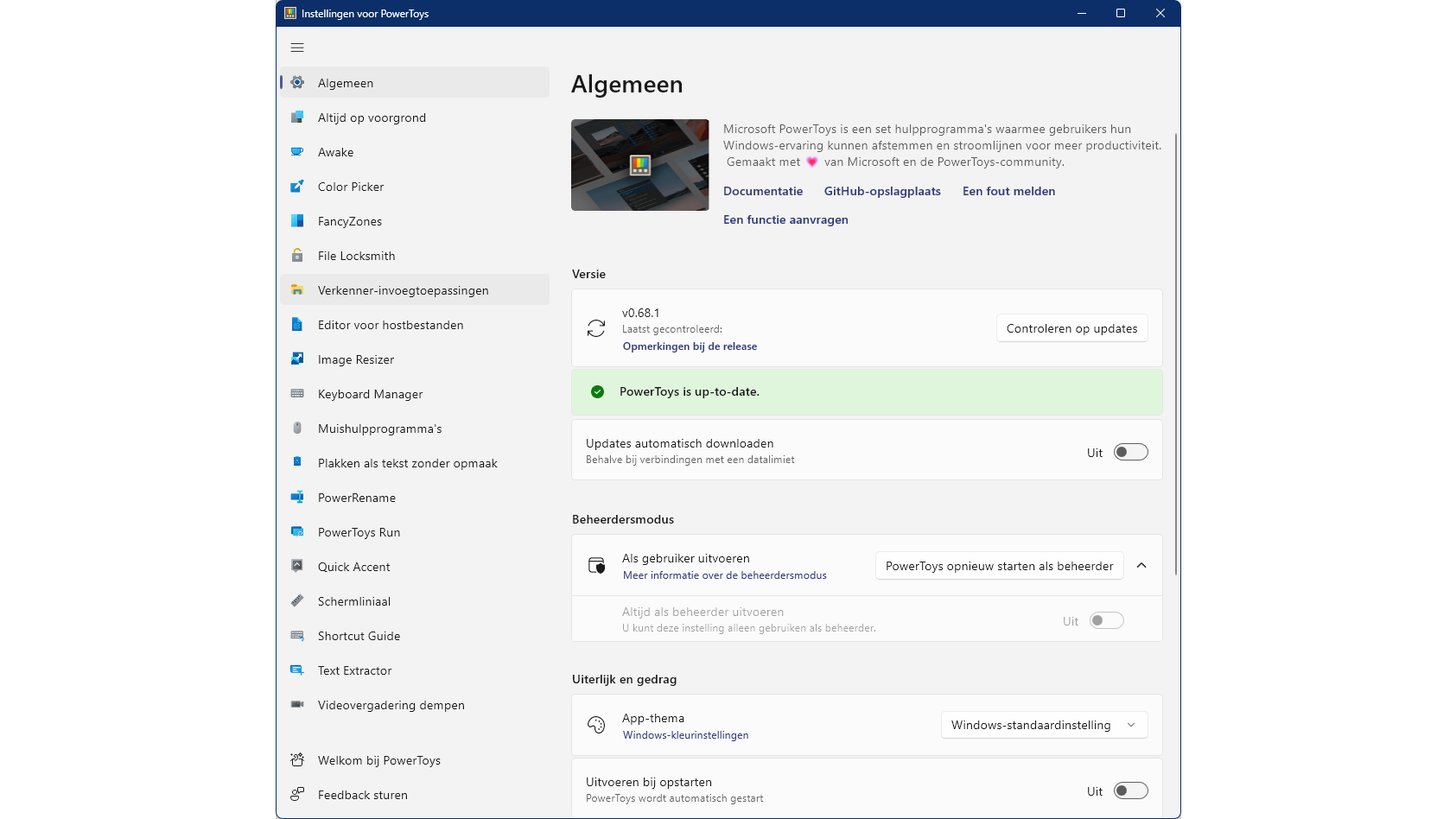 Microsoft PowerToys is een verzameling kleine tools die elk op hun manier de functionaliteit van Windows uitbreiden. Op dit moment telt de gereedschapsset bijna twintig hulpmiddelen, maar er komen er geregeld meer bij. Handig is dat je alle tools via het Windows-systeemvak vanuit een programmavenster kunt bereiken en configureren. We beperken ons hier tot een korte beschrijving van de leukste tools.
