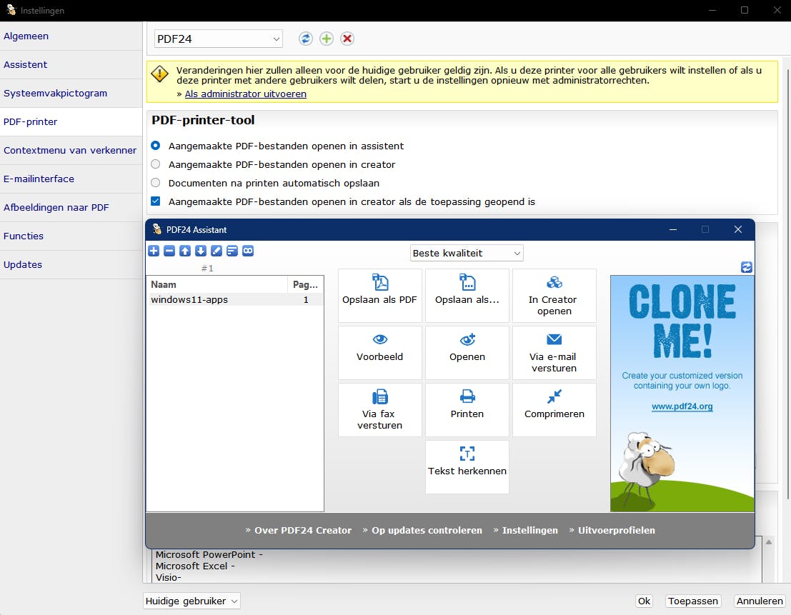 PDF24 Creator is een complete suite voor bijna al je pdf-bewerkingen. Je vindt hiervan ook online versies, maar een voordeel van de desktopversie is juist dat je volledig lokaal werkt. Om van alle mogelijkheden gebruik te maken, raden we je een volledige installatie aan.
