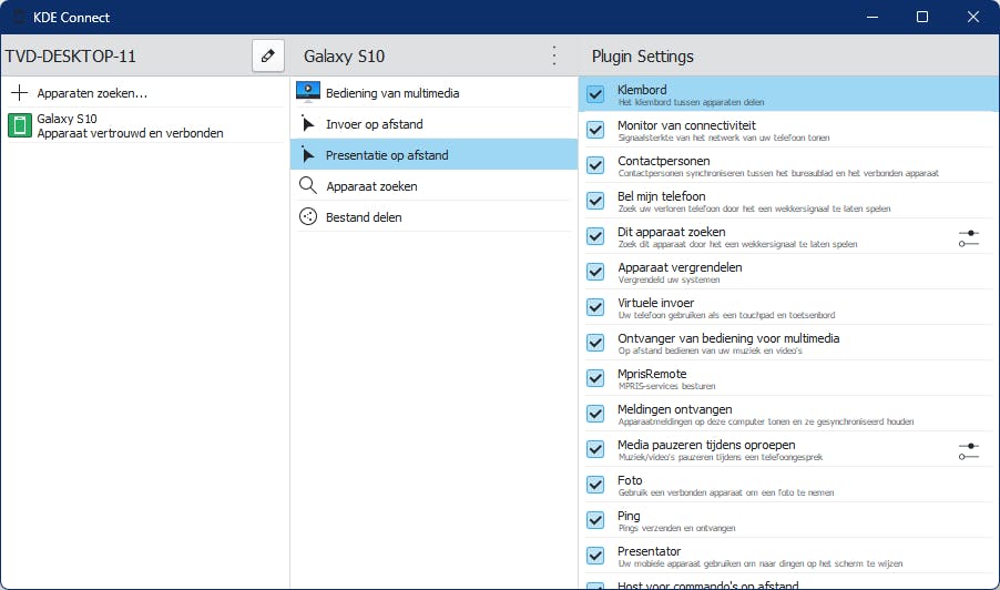 KDE Connect maakt dit allemaal mogelijk (en meer), en is duidelijk krachtiger dan de standaard Windows-app Telefoonkoppeling. Logischerwijs heb je zowel de computerversie (voor Windows, macOS en Linux) als de mobiele app nodig (deze vind je in de officiële appstores), waarna je beide toestellen aan elkaar koppelt.