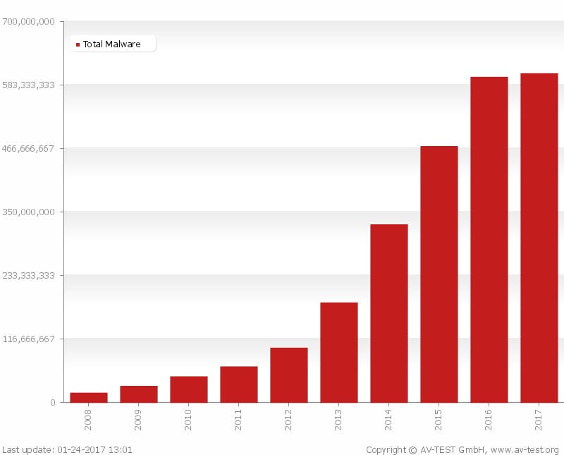 Eind 2016 waren er 600 miljoen kwaadaardige programma’s bekend. Als je dat aantal per jaar bekijkt, zoals AV-TEST op zijn webpagina met statistieken doet, bekruipt je een onbehaaglijk gevoel: het aantal malwareprogramma’s stijgt nog altijd hard. Antimalware wordt dan ook steeds belangrijker om je te beschermen tegen de voortdurende aanvallen van nieuwe malware.