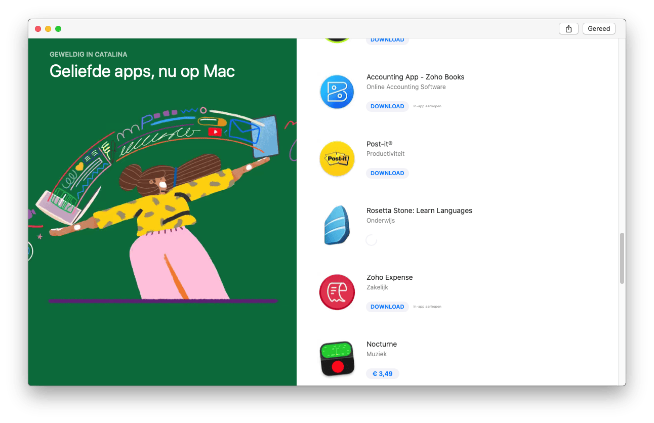 Je herkent niet of een app een zogenaamde Catalyst-app is of dat het een app is die speciaal voor de Mac App Store is gemaakt. Wel kun je in de Mac App Store op Ontwikkelen klikken en voor Geliefde apps, nu op Mac kiezen.
