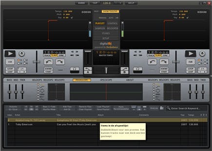 De mooie interface in combinatie met informatieve pop-ups maakt het eenvoudig om met Digital DJ te leren werken.