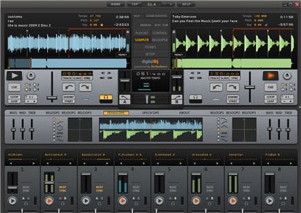 Digital DJ ziet er gelikt uit. Wanneer u het programma opstart krijgt u een virtuele draaitafel te zien. Wie al ooit een echte mengtafel in handen heeft gehad, zal ook onmiddellijk met deze digitale draaitafel aan de slag kunnen. Beginners kunnen alle knopjes leren kennen dankzij de pop-upschermpjes die verschijnen wanneer u met uw muiscursor boven een knop of venster blijft zweven. U kunt een reeks nummers inladen of uw favoriete muziek en afspeellijsten uit iTunes rechtstreeks importeren in Digital DJ. Nummers beluisteren - of voorbeluisteren met koptelefoon - gaat eenvoudig via het Playlist-venster. Wie echt heel veel nummers inlaadt, kan via de zoekfunctie in de browser snel nummers opsporen.