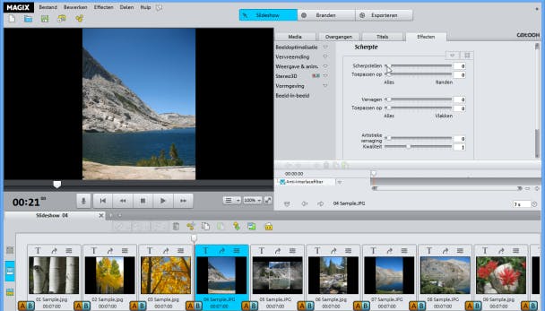 Je kunt je creatie makkelijk delen via Facebook of YouTube, of gebruik maken van de kant-en-klare sjablonen voor mobiele apparaten. Dit is een ideaal pakket om mooie fotoreportages (van een verre reis of huwelijk) te maken. Het enige minpunt is de prijs: er zijn immers heel wat gratis alternatieven die niet eens zo veel minder functionaliteiten bieden.