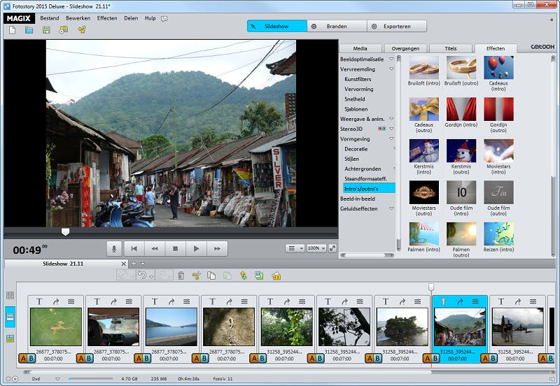 In Fotostory 2015 staan er een heleboel effecten klaar waarmee je de voorstelling kunt verfraaien.