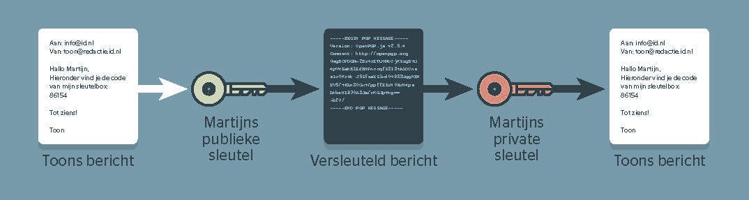 Bij het versleutelen gebruikt de afzender de publieke sleutel van de ontvanger, zodat alleen de ontvanger het bericht kan ontsleutelen met zijn private sleutel. Digitale handtekeningen garanderen de integriteit van het bericht en verifiëren de identiteit van de afzender.