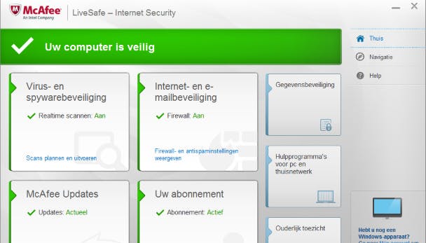 LiveSafe of Windows is McAfee Internet Security met al zijn bekende functies.