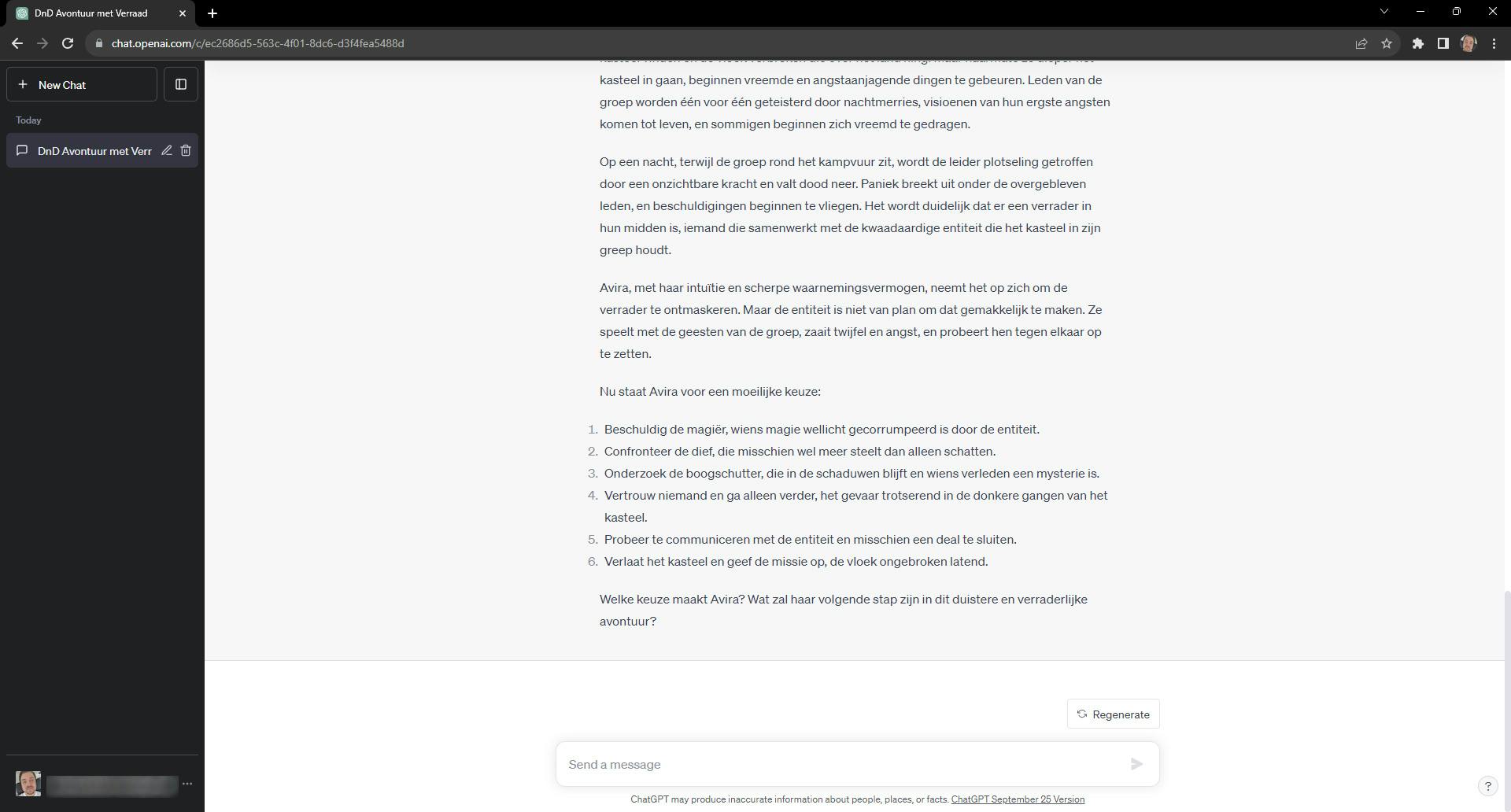 Wellicht ken je deze games nog van vroeger: tekstavonturen. Dat zijn interactieve verhalen waarbij je vaak zelf invloed op het verloop uitoefent. Door daar kunstmatige intelligentie achter te plaatsen, bestaan er eindeloos veel variabelen en middelen, waardoor je je creatieve brein volop de ruimte kunt geven. Daar kun je het best AI Quest voor gebruiken. Je geeft de chatbot een naam, leeftijdsgroep, onderwerp en stijl mee. Vervolgens gaat het verhaal van start en komen er allerlei momenten voorbij waarop je het verloop van het avontuur richting kunt geven.