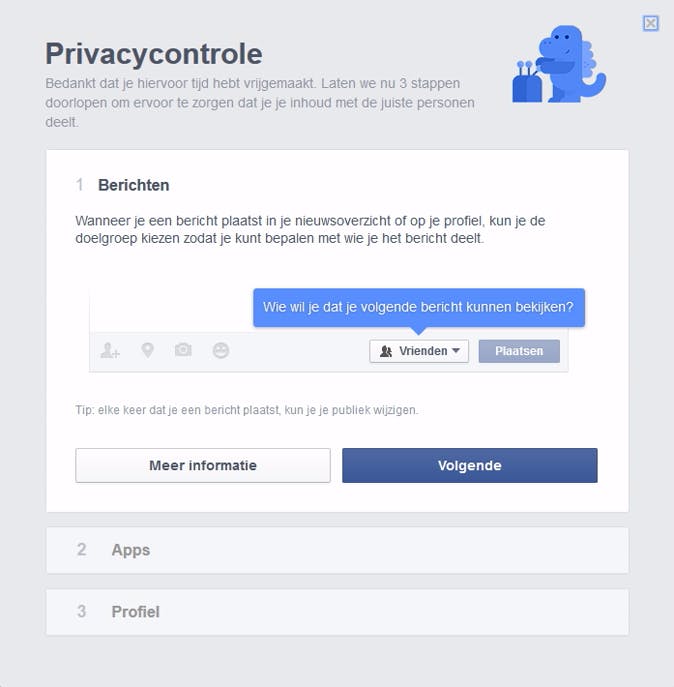 Met kinderachtige dino's wordt verhuld dat Facebook eigenlijk nauwelijks privacy-instellingen heeft.