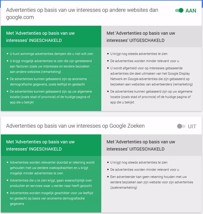 Google gebruikt standaard je internet- en zoekgeschiedenis voor advertenties.