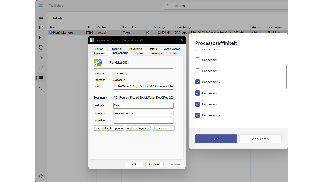 Je kunt zowel de prioriteit als de affiniteit instellen via Taakbeheer, maar op die manier is zo’n aanpassing alleen geldig voor de huidige Windows-sessie.