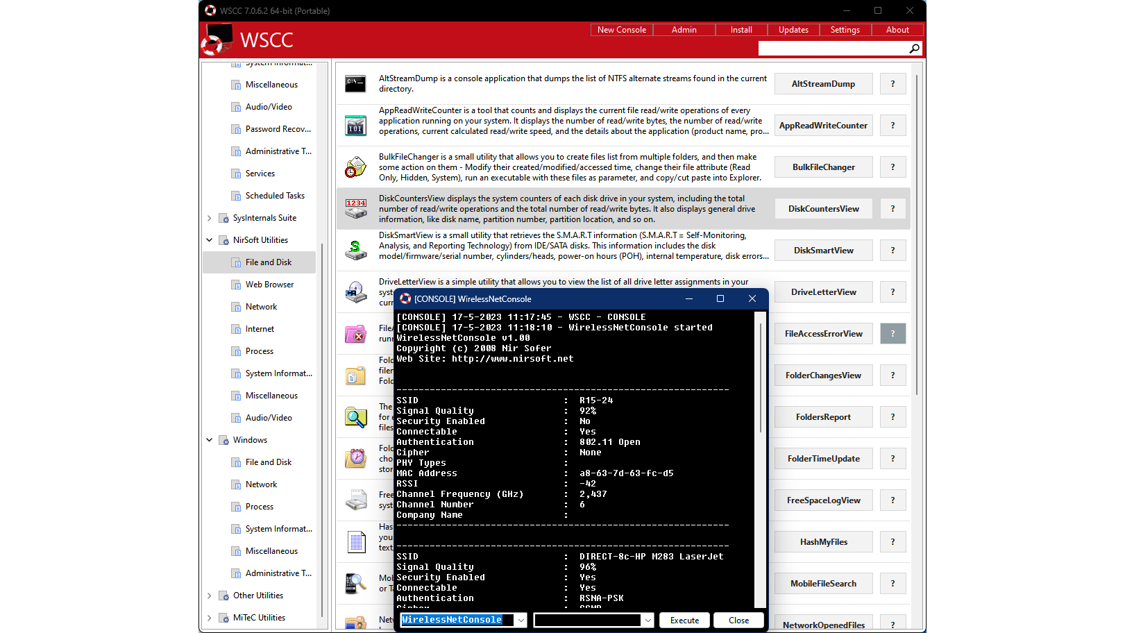 Maar het wordt nog mooier: WSCC (Windows System Control Center) combineert namelijk beide toolkits en nog enkele andere in één grafische interface, van waaruit je alle tools overzichtelijk gerubriceerd en kort toegelicht kunt starten. Je kunt WSCC downloaden (beschikbaar in zowel 32- als 64bit-versies, zowel installeerbaar als draagbaar). Je hebt de mogelijkheid om zelf te bepalen welke toolkits en tools je daadwerkelijk wilt downloaden en installeren. In totaal zijn er bijna driehonderd tools beschikbaar (zonder die van Windows zelf), die samen slechts 230 MB schijfruimte innemen.