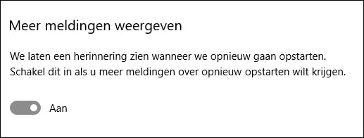 Dankzij de extra functies krijgen gebruikers weer meer de controle over wanneer de computer opnieuw wordt opgestart na een update. Overigens is hert wel zo dat Windows 10 veel minder vaak een complete herstart nodig heeft om een update te installeren. Alleen grote updates, zoals een build-versie, zal altijd nog vereisen dat de computer opnieuw wordt gestart om alle wijzigingen door te voeren.